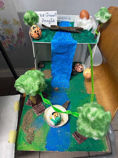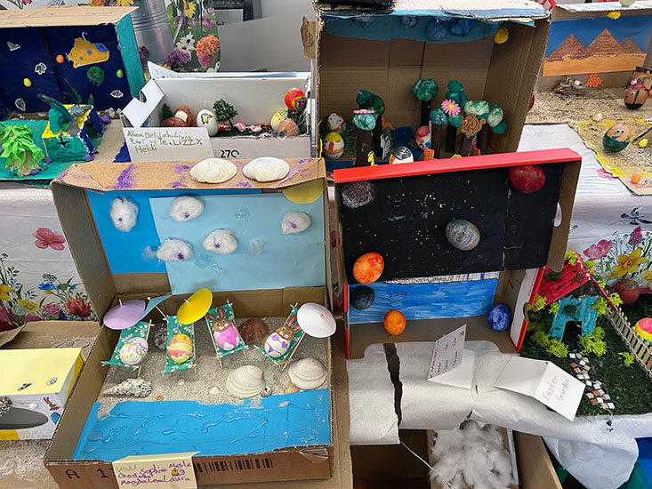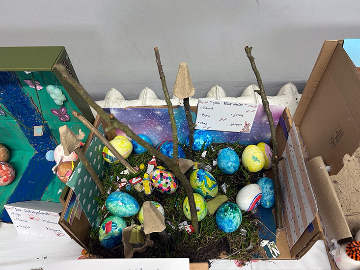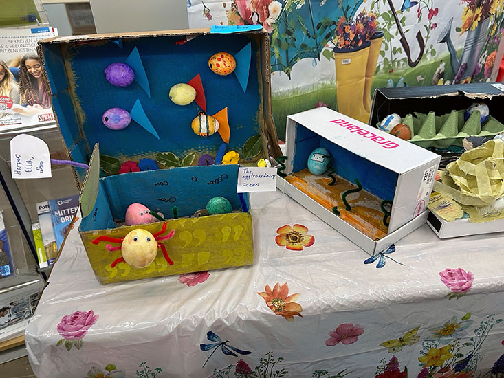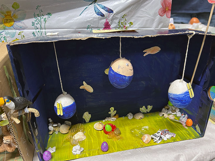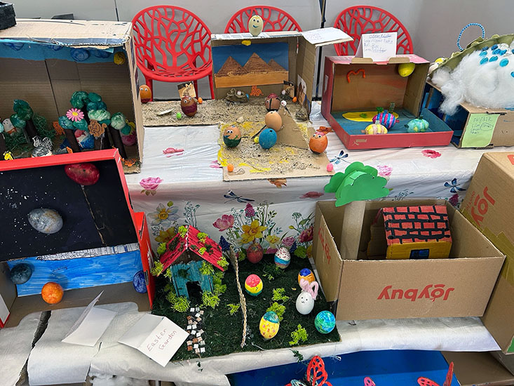 Working in mixed-age groups, pupils demonstrated excellent teamwork, supporting and learning from one another as they created their imaginative ‘Eggstraordinary Planet Earth’ displays. It was particularly pleasing to see that while older pupils guided and encouraged, younger pupils also contributed a wealth of ideas, creativity, and enthusiasm, making each group’s work a genuine team effort.